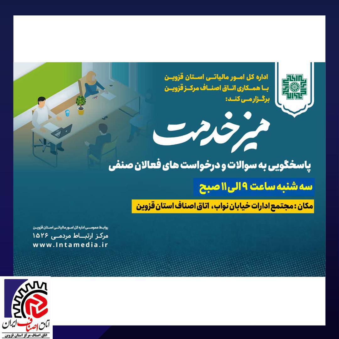 میز خدمت مالیاتی در اتاق اصناف مرکز استان قزوین